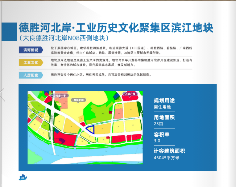 回顾今年顺德土地推介会,本宗地块曾在其中被重点推荐,名为德胜河北岸·工业历史文化集聚区滨江地块。