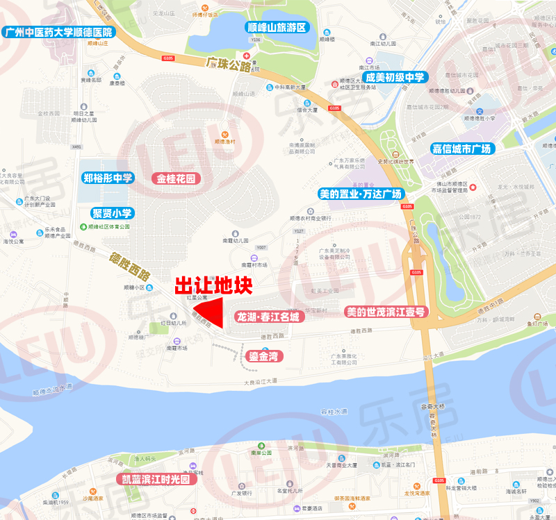 从地块位置来看,宗地位于大良德胜河北岸片区、顺德糖厂附近,毗邻龙湖春江名城,南望德胜河景观,临近顺德大道(105过道)、德胜西路、碧桂路、广珠西线高速等。