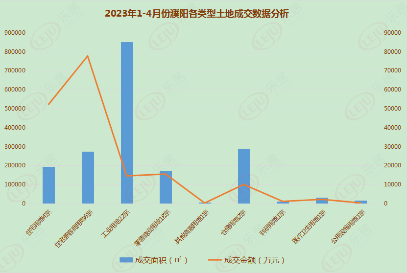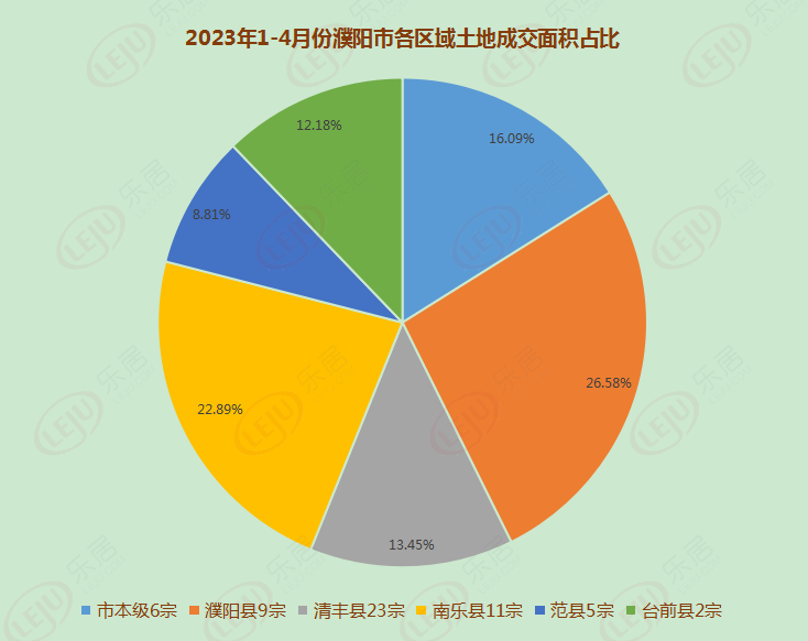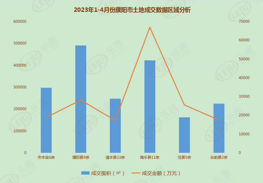 濮阳县土地成交9宗,成交面积491843.07㎡,约占2023年前4个月土地成交总面积的26.58%,成交金额28113.5209万元;