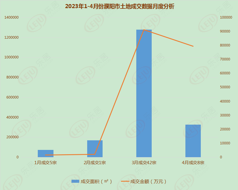 南乐县土地成交11宗,成交面积423584.76㎡,约占2023年前4个月土地成交总面积的22.89%,成交金额66916万元;