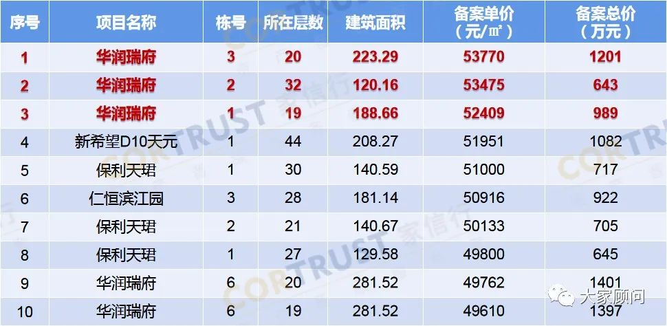 新房豪宅周度备案单价排行榜