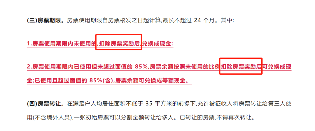 不过,超过期限房票未使用,仍可兑换现金,但要注意的是,需扣除房票奖励。