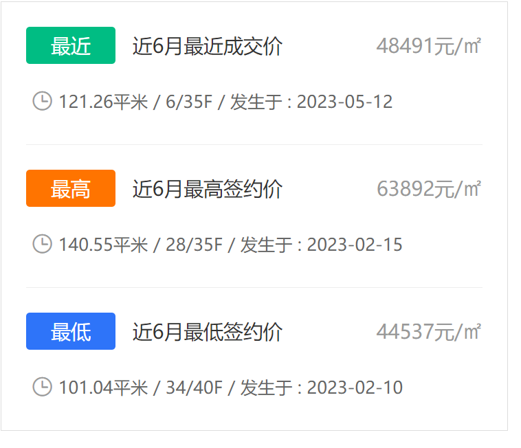 值得一提的是,本次出让地块新房限价46000元/㎡,比晓月映翠要低5500元/㎡。且与周边二手房存在一定价差,如保利天汇近一个月挂牌价在62419元/㎡,签约价在51270元/㎡。最近一次成交发生在5月12日,一套121㎡户型房源,成交价48491元/㎡。