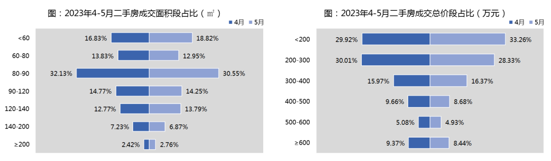 在5月二手房成交面积段中,90㎡以下的房源占比近63%,总价300万以下的房源占比近62%。在杭州5月二手房成交热门小区中,大部分也是单价2、3字头。