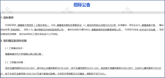 6月19日,福州市公共资源交易网发布“福建美术馆项目-招标公告”。公告显示,项目已完成初步设计及批复,现对该项目的工程总承包进行公开招标。