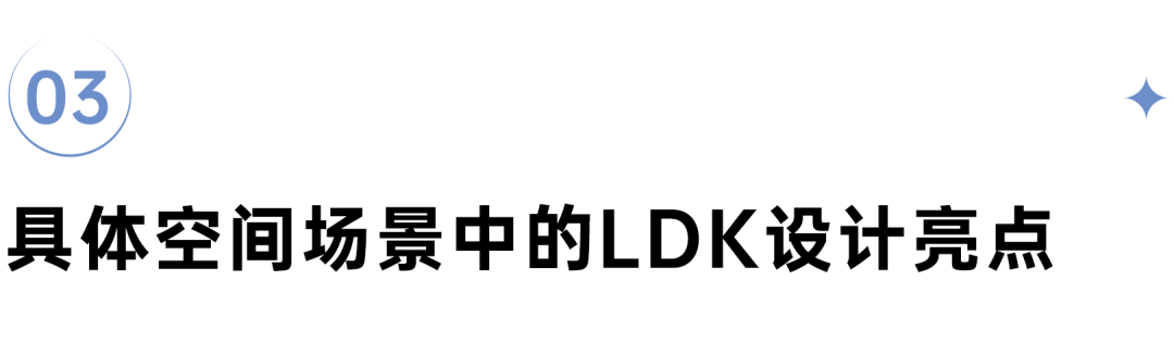 同时,LDK一体化之下,在消融了明确的空间界限的同时,亦打破了传统客厅的固有模式,不再拘泥于单一的“会客”功能,从家庭高频需求出发,重新组合核心功能区,且灵活多变满足多样化场景。