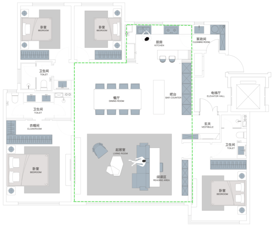 改善客群有一定的经济基础,追求居住的舒适度,更注重家庭陪伴、情感交流,因此更关注客餐空间的互动性。