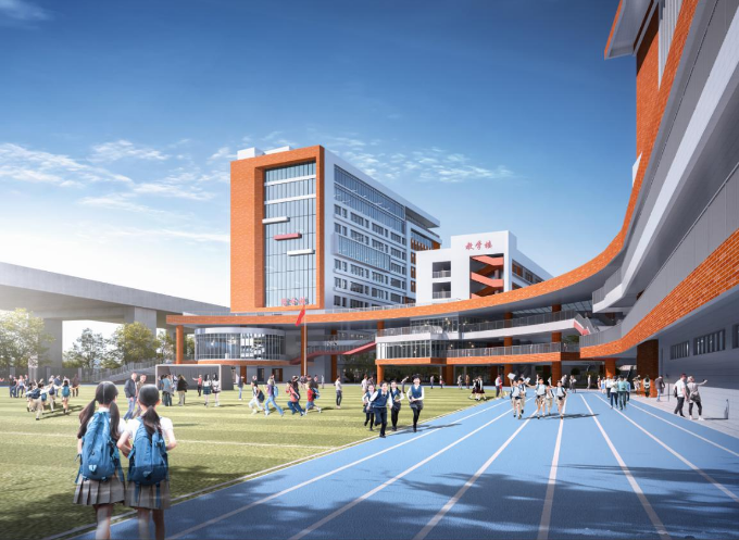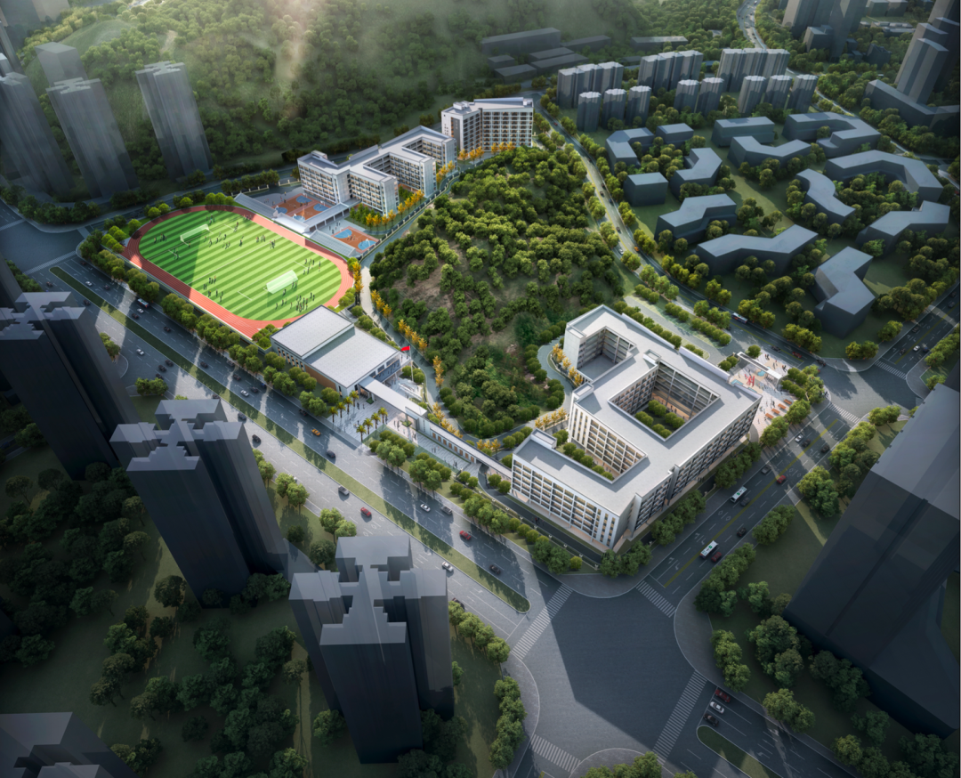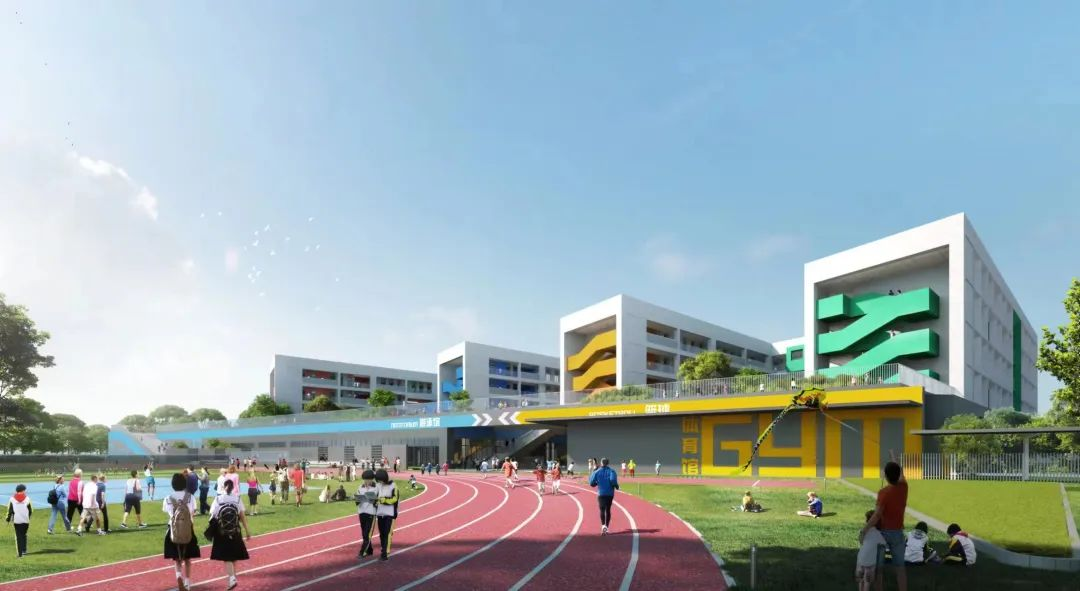 据介绍,该学校是里水首所九年一贯制公办学校,总用地面积59965m²,可供给小学36个班1620个学位、中学30个班1500个学位以及不少于1500个中学宿位,预计将于2024年建成。学校设置了小学部、中学部、体育馆综合楼、宿舍、标准田径场等建筑单体。