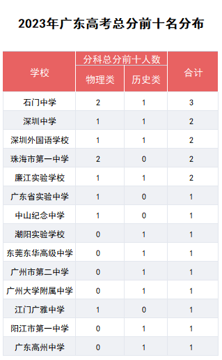 坊间流传信息来看,广东省前十名尖子生分布中,南海石门中学历史类屏蔽了一人,物理类屏蔽了两人,成了今年的最大黑马!以3人的占比居众名校之首!