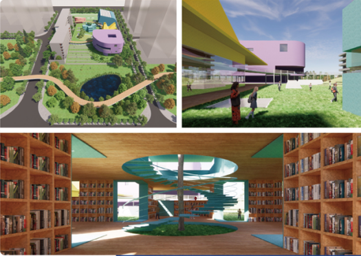 该学校规划建设体育馆、校史馆、行政办公楼、教学实验楼、图书馆、观演楼、教职工宿舍楼、男女生宿舍、饭堂、首层架空、连廊,以及车库、停车位等设施,打造优质的教学环境。
