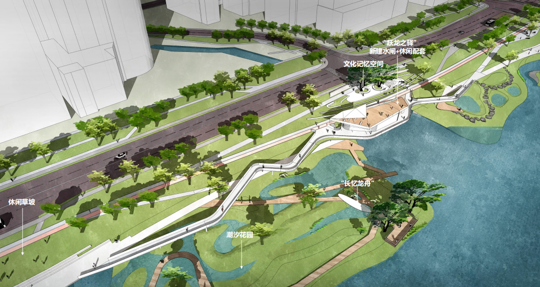 一方面,大沥镇统筹对沿佛山水道长约3公里的滨水地带进行改造提升,项目总投资超2亿元,以“公共艺术+数字艺术+生态艺术”营造水岸景观。