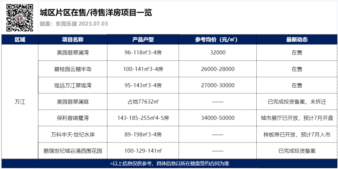 作为东莞中心城区的旧改大户,万江囤积了不少项目,未来供应也将以旧改项目为主。