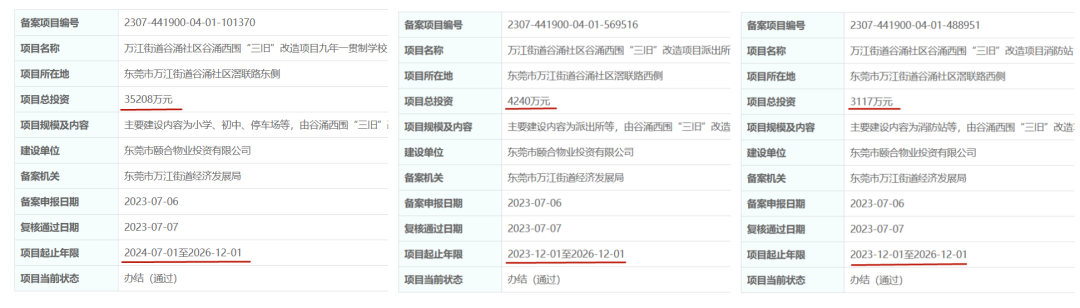 同时完成备案的还有一所九年一贯制学校、一座派出所和一个消防站,投资金额约4.26亿元。