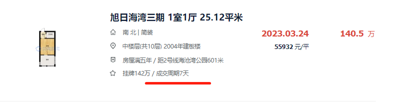 其中,旭日海湾三期一些28㎡左右的房源,成交单价频频破5万,最高接近5.6万/㎡。不少房源还是几天或几十天内快速成交,在市场上很受关注。