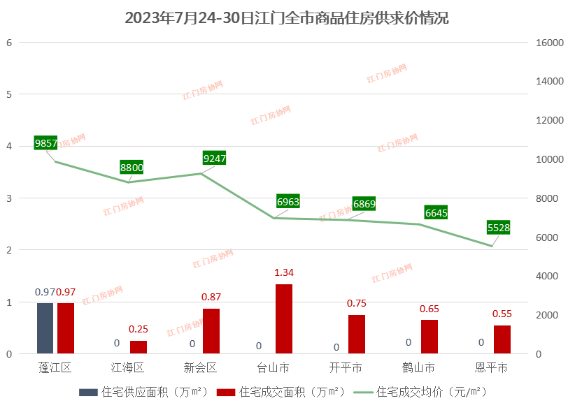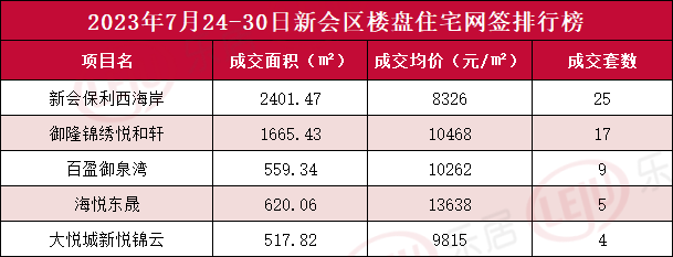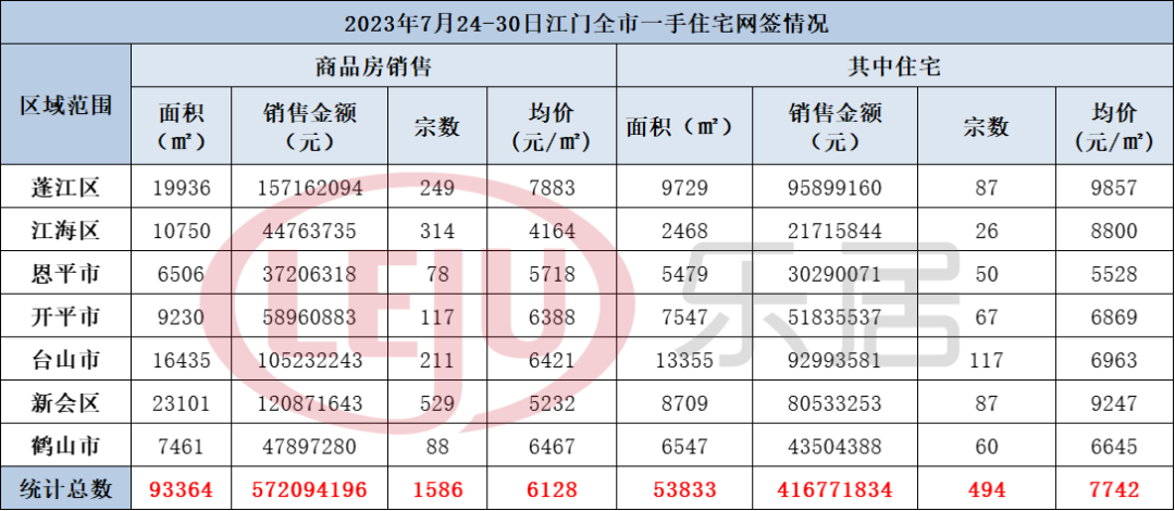 2023年7月24-30日,江门全市一手住宅成交494套,住宅成交均价7742元/㎡。