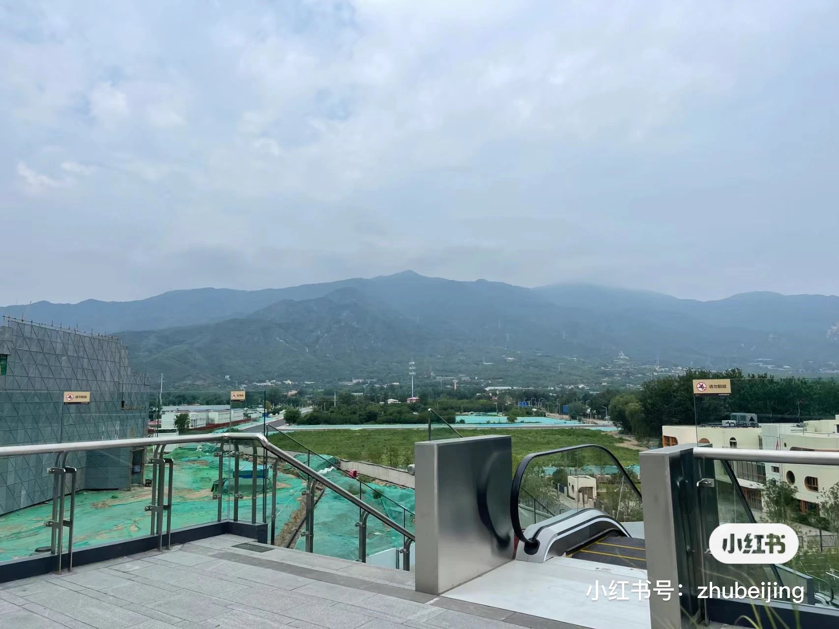 目前小区北侧、与地铁站衔接部分尚未完全完工,所以归家还需走4分钟。出16号线北安河站D口,向西,迎着西山直行2分钟,再左拐走2分钟,就能看到步梯与直梯,上行到达“上盖”,这就是归家动线。
