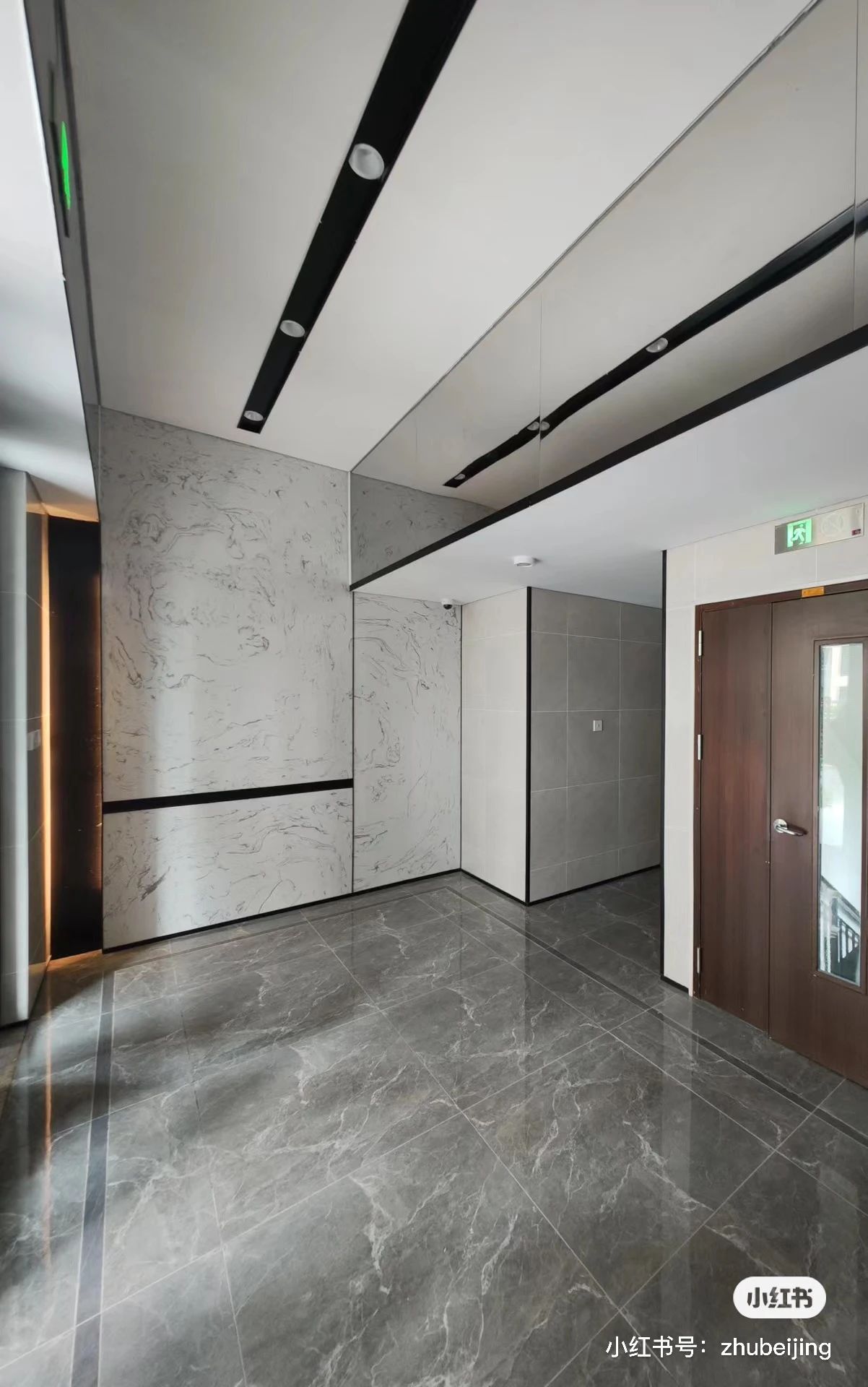 室内装标确实朴素,但公区交付标准对得起这四五百万的票价。大堂空间、挑高、过道宽度、硬装交标都没得挑,首二层剪刀梯也上了砖。