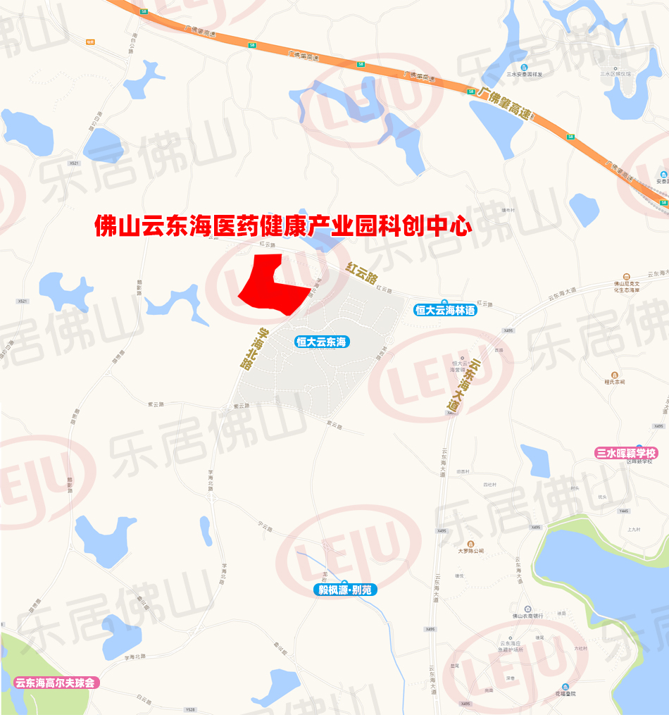从地图上看,佛山云东海医药健康产业园科创中心就位于三水云东海板块,紧挨恒大云东海,周边还有保利云上、广东财经大学佛山校区,以及云东海轻轨站等配套。