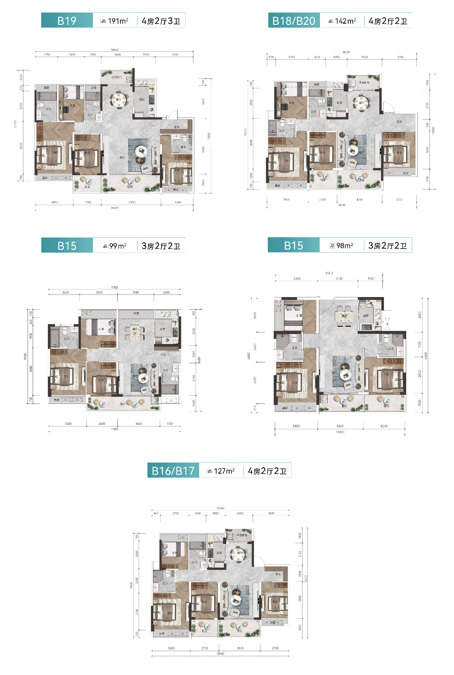 B区则计容约5.2万㎡,定名为科创中心云博汇,主要规划建设6栋14-16层的住宅楼,涵盖住宅总计382套,将主打98㎡、127㎡、142㎡和191㎡产品,户型也均已对外曝光。