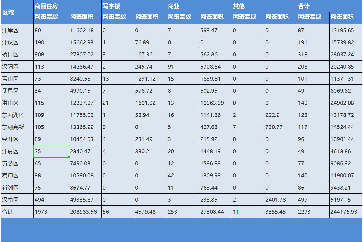 据统计,8月第四周武汉市新建商品房成交备案2293套,其中新建商品住宅成交1973套。统计数据显示,汉南494套,硚口区318套、汉阳206套成交分列前三。