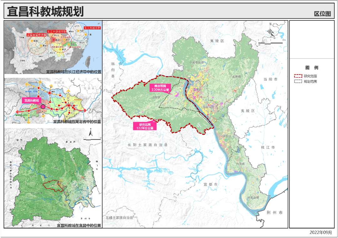 2022年7月28日,宜昌市自然资源和规划局发布《宜昌科教城规划》的公示公告中指出,宜昌科教城规划范围为现状翻坝高速、规划城西高速及长江围合的点军区集中建设区域,总面积100平方公里,到2035年人口达到40万人。