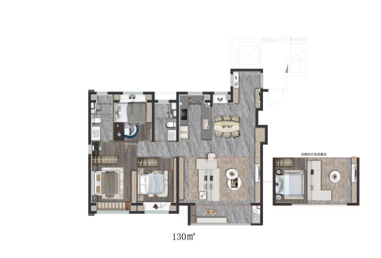 建筑面积约130m²户型