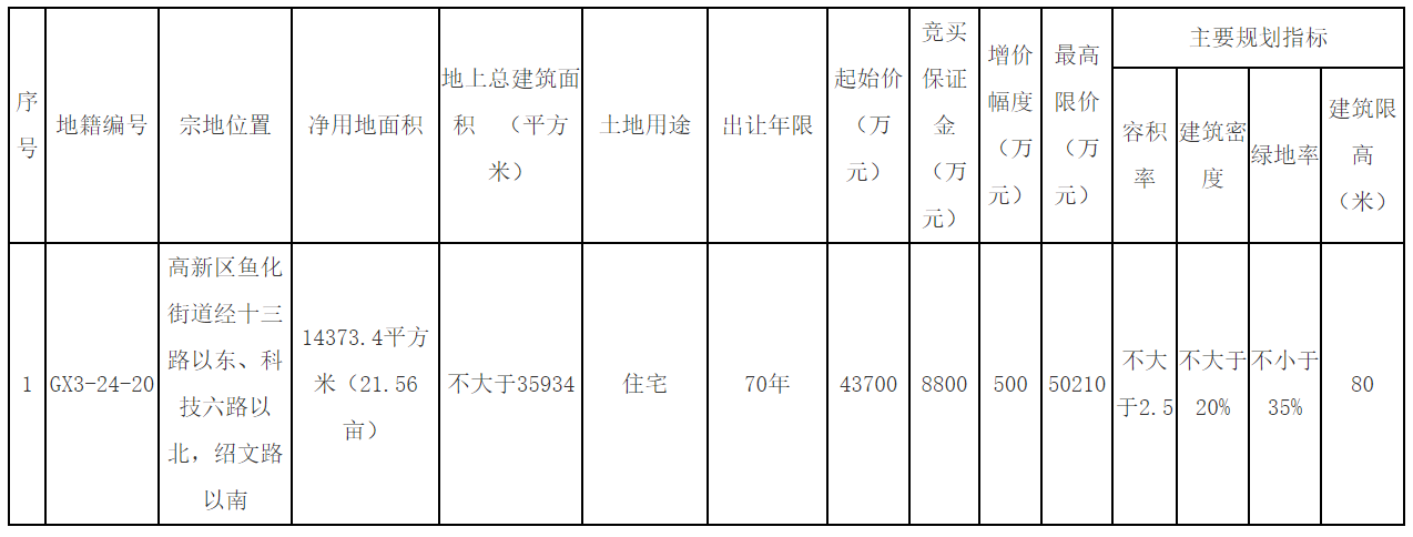 GX3-24-20地块,位于高新区鱼化街道经十三路以东、科技六路以北,绍文路以南,净用地面积14373.4平方米(21.56亩)。