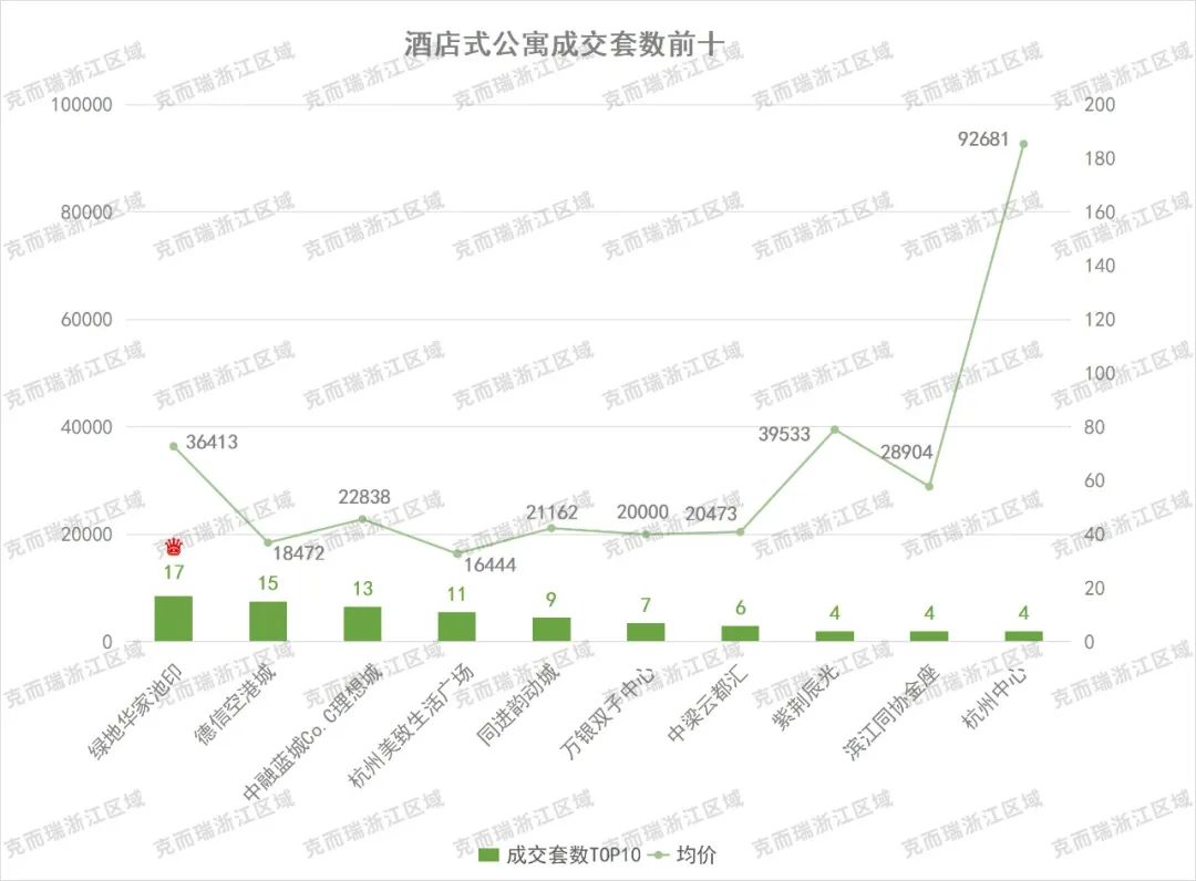 上周的公寓成交排行榜中,成交前三分别为上城区的绿地华家池印(备案名:海域晶华公寓,均价36413元/平米)、钱塘区的德信空港城(同备案名,均价18472元/平米)、西湖区的中融蓝城Co.C理想城(备案名:杭州国际金融会展中心,均价22838元/平米)。