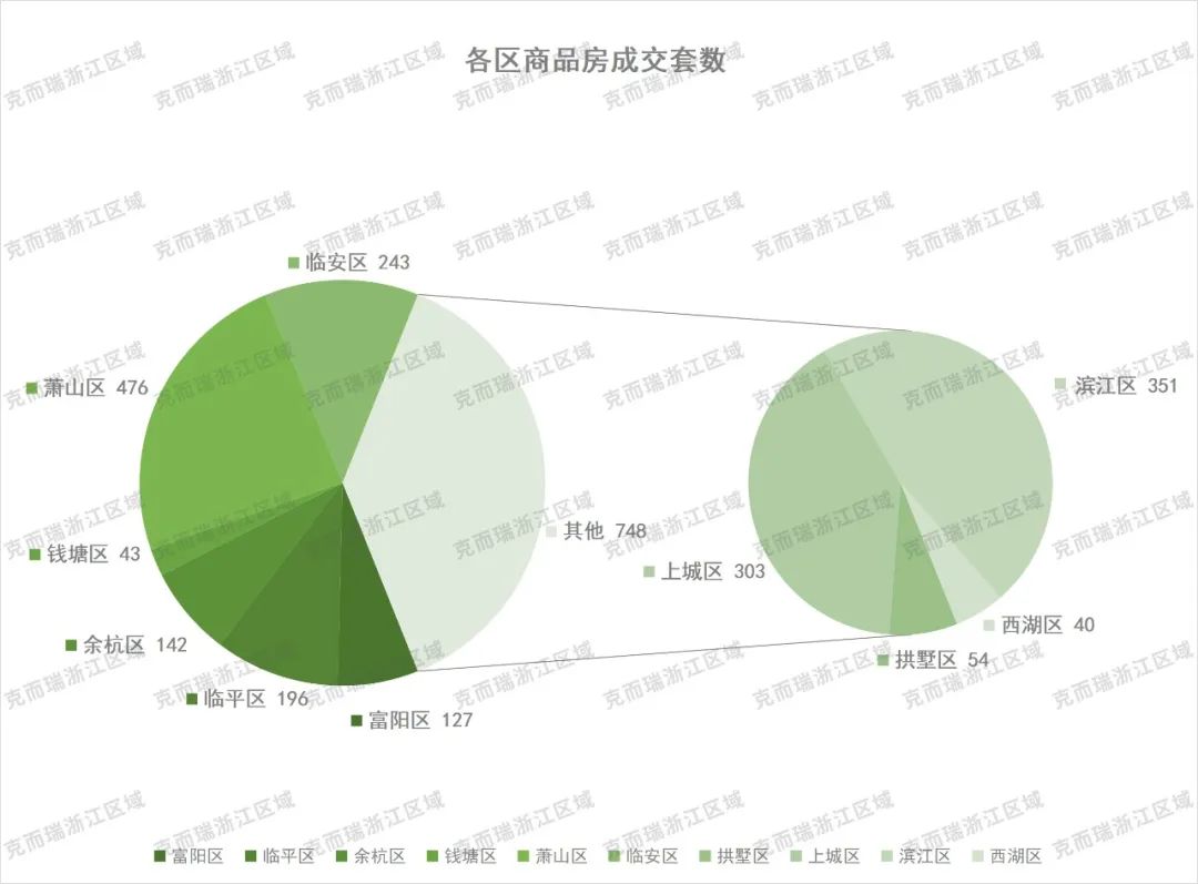 从各区成交套数的排名来看,前三分别为萧山区(成交476套)、滨江区(成交351套)、上城区(成交303套);