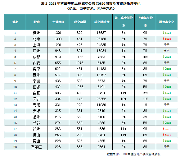 杭州成交金额位居榜首,苏、杭、宁等热点城市下半年土拍降温(节选)