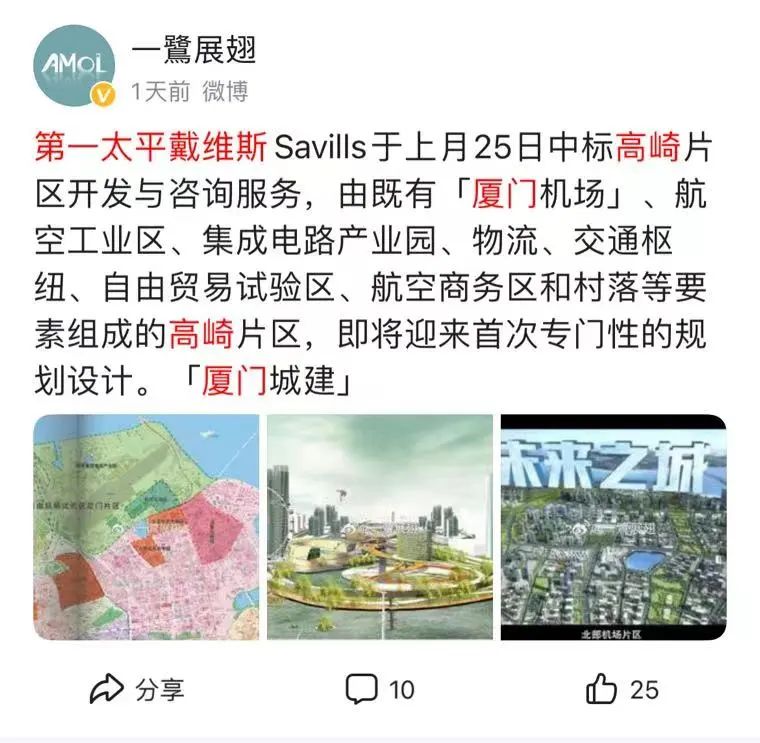 不过,近期片区迎来新动态。根据一鹭展翅消息指出:第一太平戴维斯Savills于上月25日中标高崎片区开发与咨询服务,由既有厦门机场、航空工业区、集成电路产业园、物流、交通枢纽、自由贸易试验区、航空商务区和村落等要素组成的高崎片区,即将迎来首次专门性的规划设计。