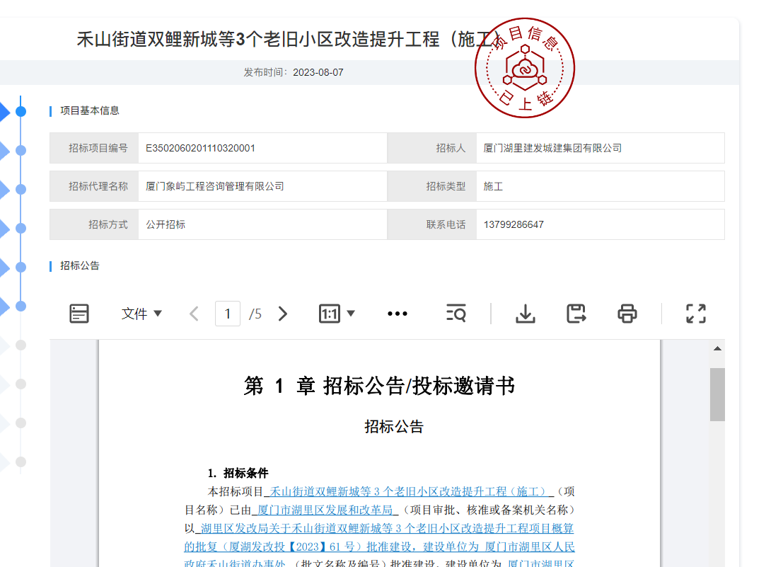 今年8月,双鲤新城等3个老旧小区改造提升工程(施工)招标,拟对禾山街道辖区内双鲤新城小区、艾德花园小区、宏伟大厦小区等3个老旧小区进行改造提升。