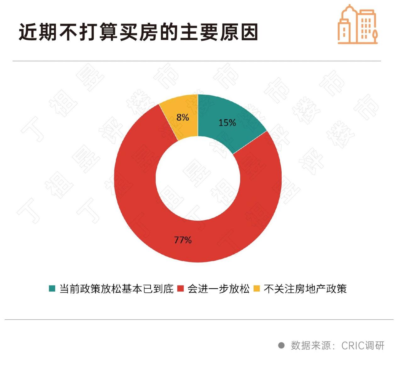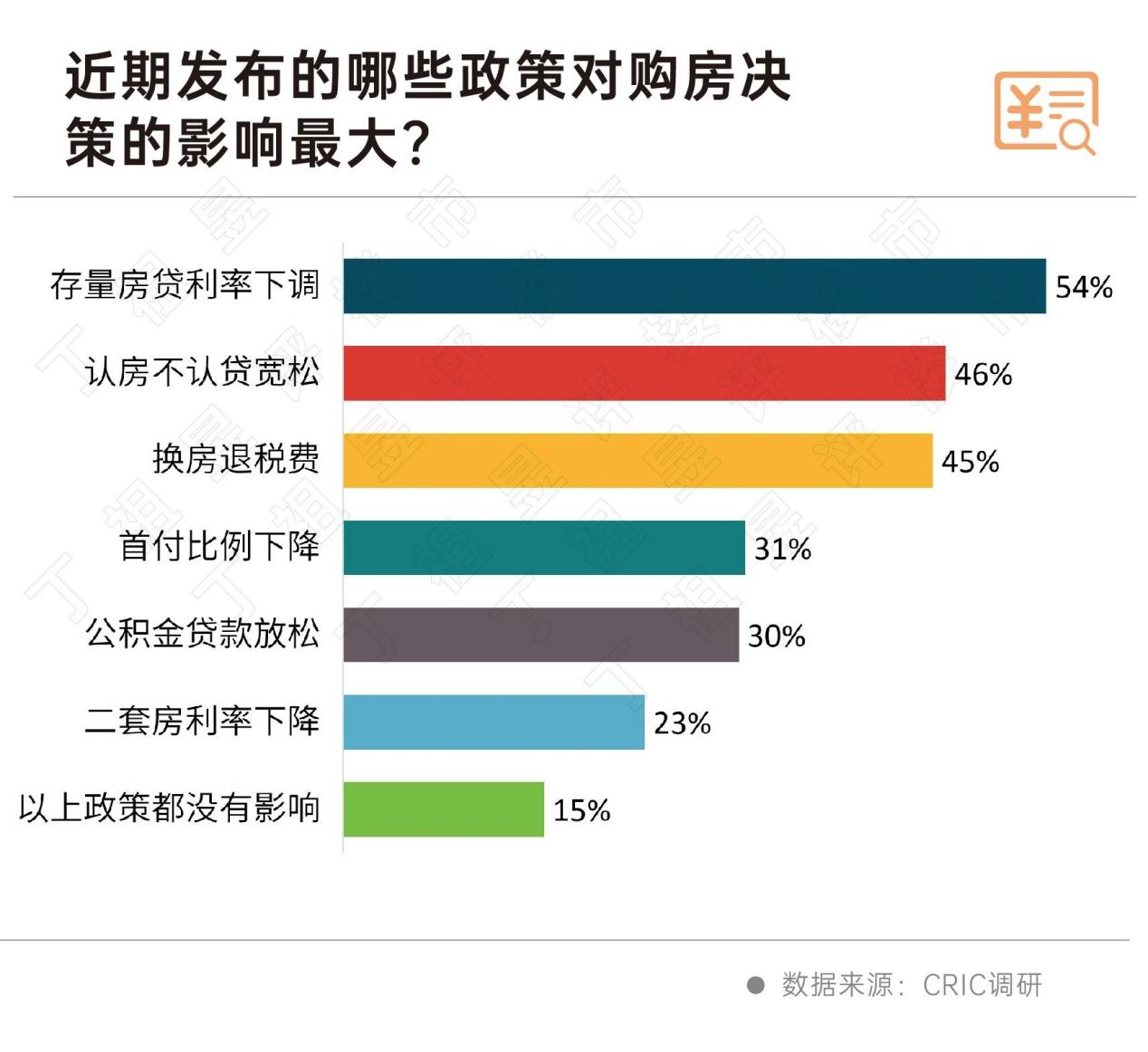 实际上,在购房意愿调研中,接近半数购房者仍在观望,46%的购房者认为可能还会有更多政策利好。