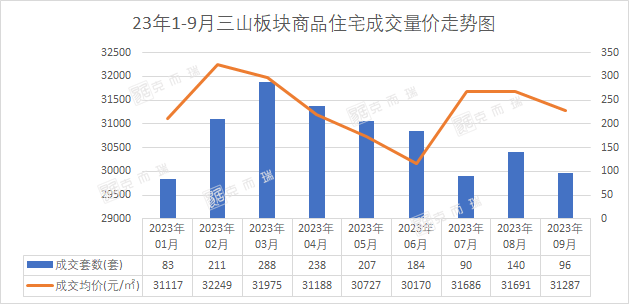 而同样紧挨番禺的三山新城,在今年下半年成交开始有所下滑,从3月最高288套,到7月、9月均不过100套。