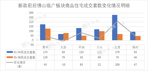 其中,以北滘降幅最大,较新政前锐减209套;其次是平洲,减少83套;第三是陈村,减少47套。