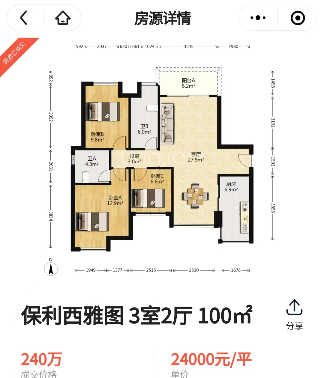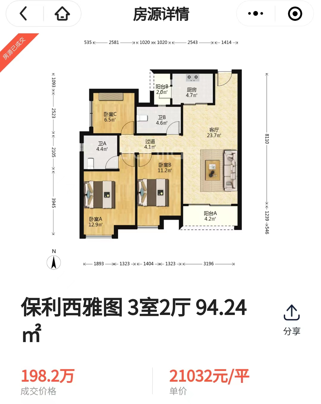今年9月,三山保利西雅图成交了一套3房户型,成交总价198.2万,还是南向户型。据成交该套房源的经纪人介绍,业主着急置换去番禺,所以买家砍价他也只能无奈接受。