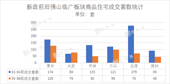 新政前31-34周佛山临广板块住宅合计成交869套,