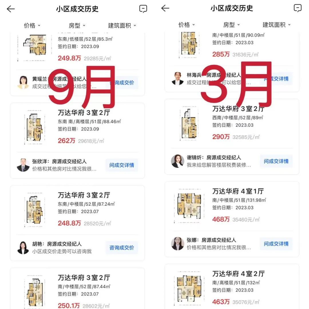 而主打小户型的万达华府,近半年成交均价已跌落3字头。