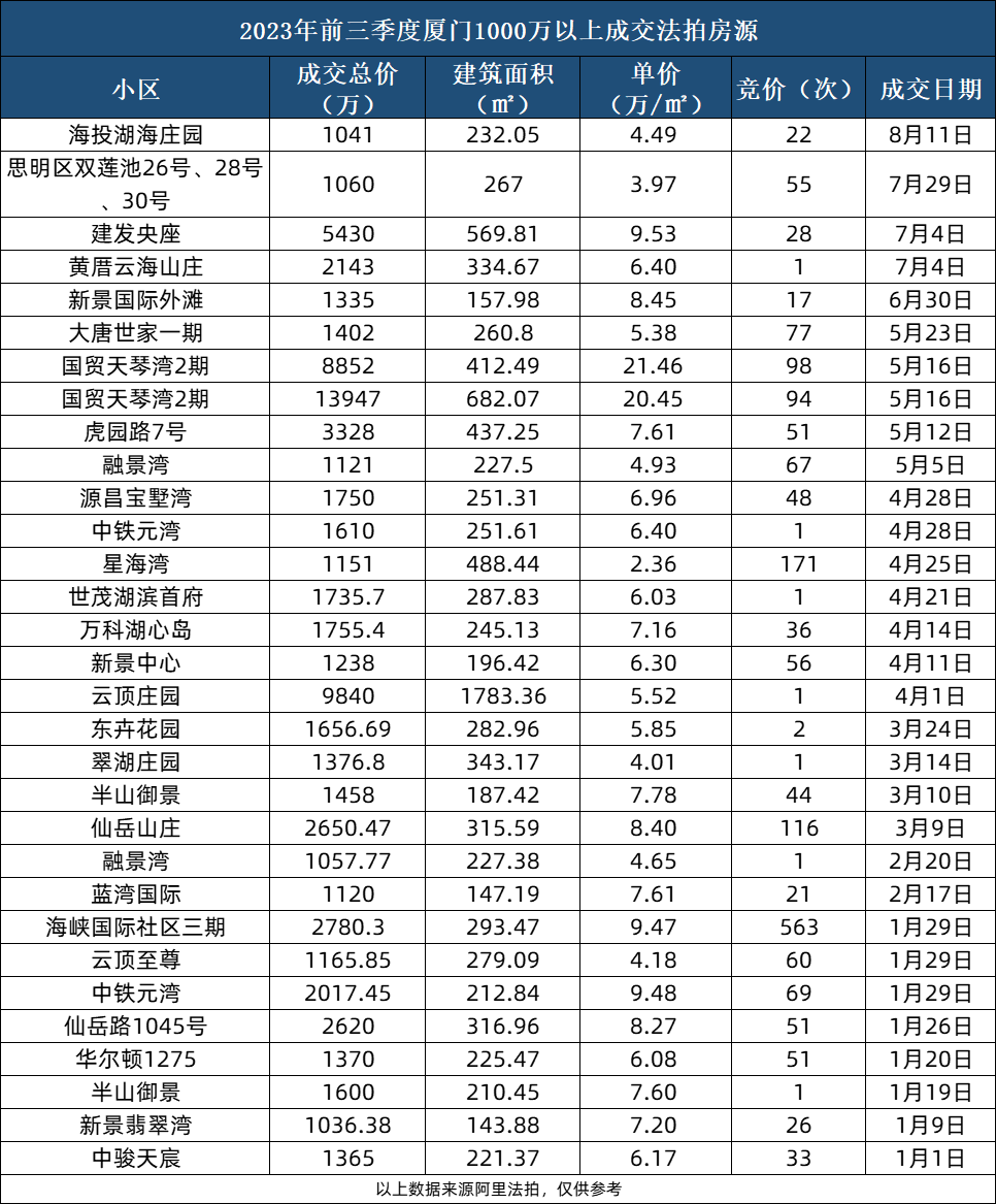 文:厦门乐居(部分来源:丁祖昱评楼市、贝壳、阿里法拍、厦门网上房地产等)