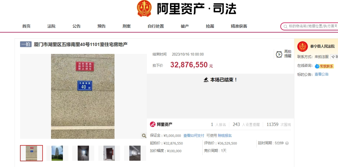 法拍房成交31套 最高1.39亿成交