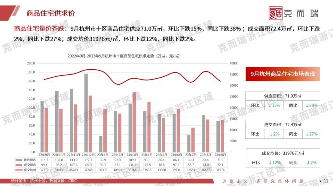 9月,杭州新房供需环比双降,楼市“金九效应”暂未显现。