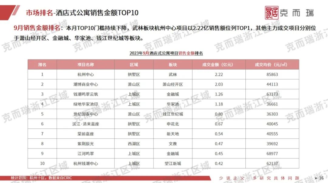 为了客观、及时、全面地呈现杭州房地产市场的最新动态和发展趋势,助力房企更快、更多、更精准地掌握到市场风向,克而瑞浙江区域市场研究条线经过反复的数据核对、深入的市场调研和核心的观点萃取,推出「杭州市场月报」。