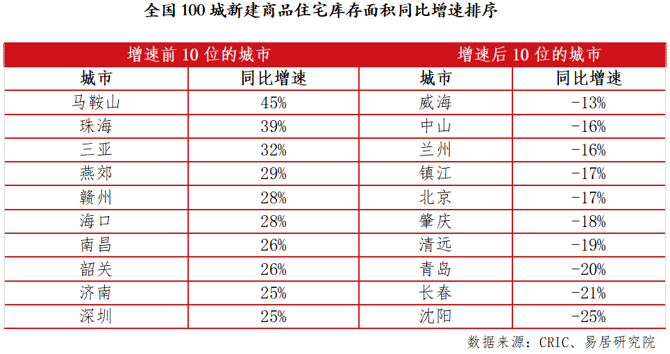 另外,从城市排序来看,有49个城市库存指标呈现了同比正增长态势。报告显示,包括马鞍山、珠海和三亚等重点城市库存同比增速较高。在易居研究院看来,此类城市库存同比正增长,说明房源供应充裕,结合四季度各类利好的购房政策,将有助于促进购房交易行情的提振。