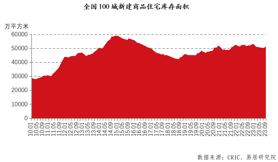 易居研究院近日发布的报告显示,截至2023年9月底,全国100个城市新建商品住宅库存总量为51221万平方米,环比增长1.4%,同比减少1.7%。从环比指标看,8-9月份全国百城库存规模有所增加。同比方面,则出现了连续6个月的下降态势。