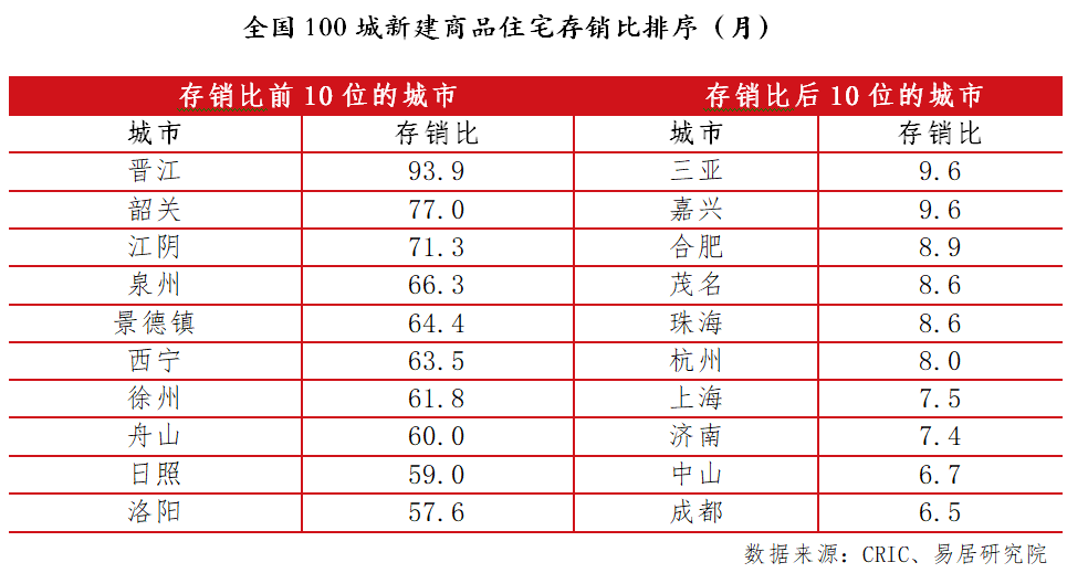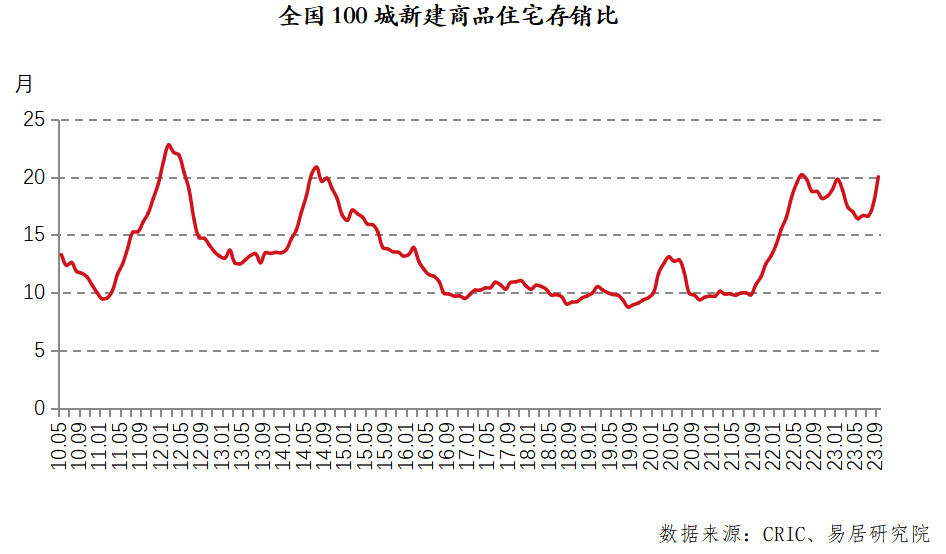 随着去化速度的加快,新房销售最大压力期已经过去。报告显示,9月全国100个城市新建商品住宅存销比即库存去化周期为20个月。