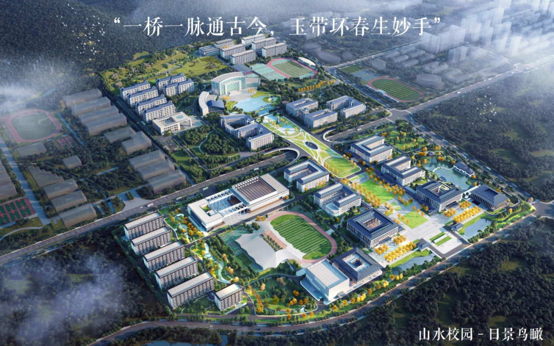 浙江中医药大学富春校区设计以中医文化、宋韵文化与富春山水文化有机结合为特色,整体布局科学合理,建筑风格庄严大气,人文韵味内涵深厚。