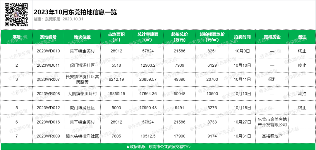 10月,东莞7宗涉宅用地排队出让,包括3宗商住地块和4宗旧改地块。其中,3宗地块成交,4宗地块提前终止或流拍,总成交金额仅约17.8亿元。