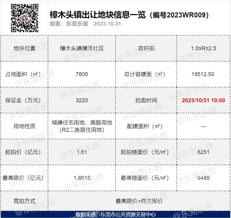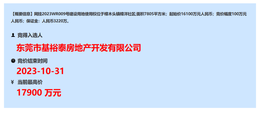 刚刚,樟木头镇樟洋社区7805㎡“迷你”地块(编号2023WR009)竞拍结果出炉!