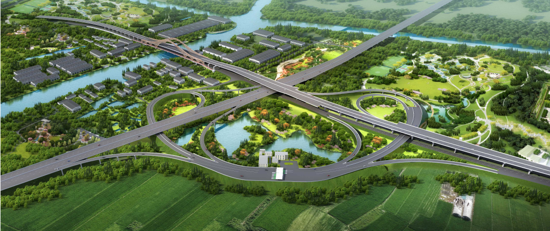 项目建设地点为塘栖镇,总用地面积约122.7亩,项目设置互通1处,采用“双喇叭+地面单喇叭”形式的复合互通,中环高架层与申嘉湖杭高速之间设置“双喇叭”互通,在中环侧高架层“单喇叭”与地面层的“单喇叭”复合。该项目实施7条匝道,匝道全长约2350米,其中桥梁长度约1415米。同时留远期补全高架层“单喇叭”的条件。