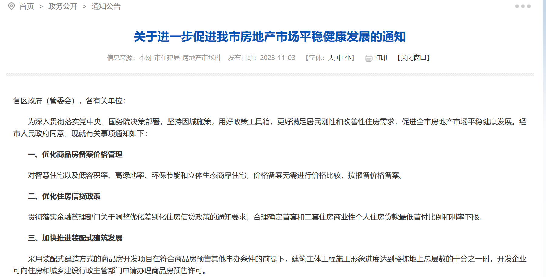 11月3日,珠海市住房和城乡建设局发布了《关于进一步促进我市房地产市场平稳健康发展的通知》。